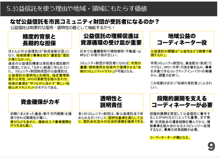 「公益信託の事業検討ワークショップ」の公益財団法人泉北のまちと暮らしを考える財団の事業案 ~ 公益信託[75]