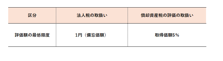 2 法人税と償却資産税の評価額の最低限度に注意します