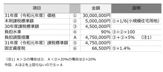 負担調整措置を踏まえて、具体的な固定資産税を計算します