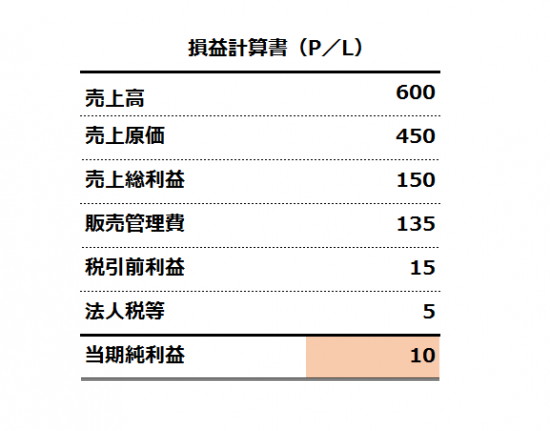 この10百万円はどこから生まれたのか?下図の損益計算書(P/L)を見てください。