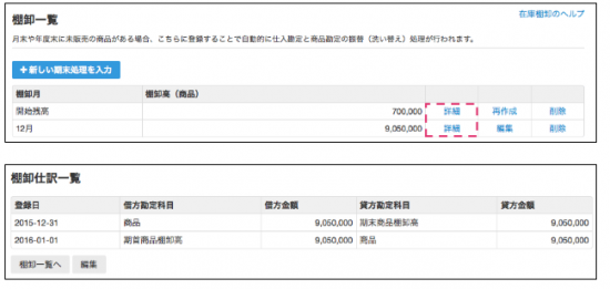 期首商品棚卸高は、前年末の在庫棚卸から自動で反映されます