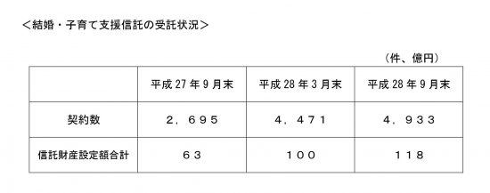 平成28年9月末時点で、信託設定額118億円です。一方、教育資金の信託設定額は1兆1635億円。